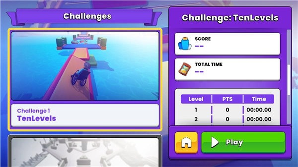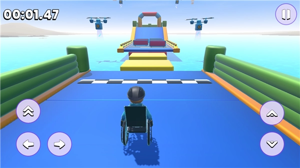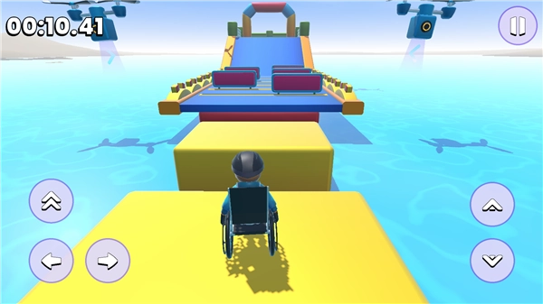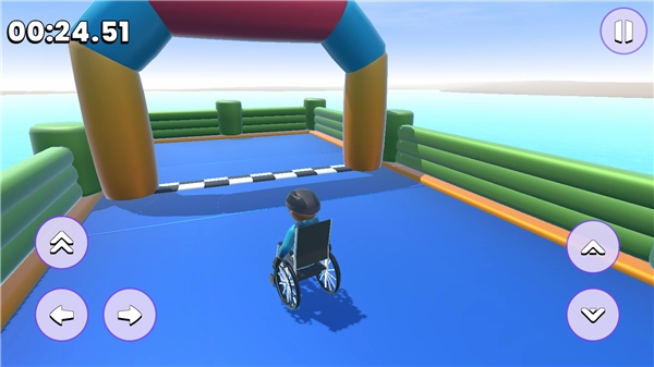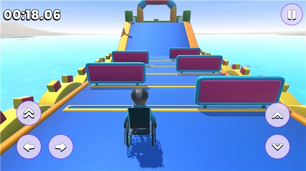 轮椅向前冲是一款3D卡通风格的轮椅主题休闲跑酷类型的游戏。玩家将控制轮椅小人穿越各个场景,靠跳跃、漂移、翻转特技通关,同时要小心台阶、旋转陷阱等。游戏需要单指滑动就可以控制方向,在空中可以微调姿势来防止翻车。游戏中还有冲刺器、减速器、护盾等道具,在遇到困难点使用是不错的选择。在游戏卡关通过后能获得一定的配件奖励,可以换轮胎、加尾焰、改外观来提升自己的轮椅。