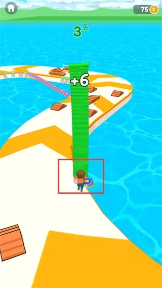 2、拾取赛道上的【+6】道具,增加搭桥材料数量,同时查看当前排名(如【3名】)调整路线。