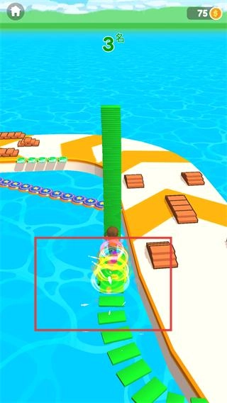 4、触发搭桥特效后,消耗材料搭建【绿色桥梁】,通过水域区域,继续推进赛道进度。