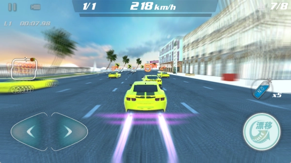 4、使用氮气加速后能快速提升速度,帮助玩家从众多赛车中脱颖而出,获得更多比赛优势。