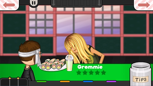 接着点击下方的海苔片来制作寿司,好让顾客享用这道可口的美食。