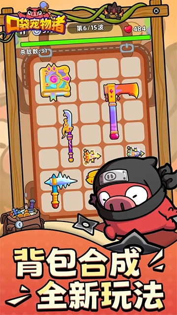 在这款名为《口袋宠物猪》的合成塔防游戏里,玩家将操控角色踏上充满未知的冒险征程,通过收集并合成种类繁多的武器与道具,不断强化自身战斗能力,最终成功击退所有敌人。