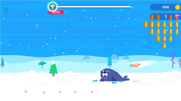 当企鹅刚落在海豹身上的那一刻点击屏幕,海豹就会把它弹出去。
