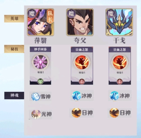 核心英雄:萍翳(队长)、夸父、干戈
