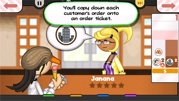 您当前的服务表现会由顾客评分,完成后还能得到金币奖励,用这样的方式去接待更多顾客吧!