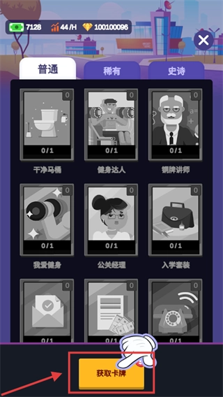 点击【获取卡牌】按钮,就能得到品质各异的卡牌,这些卡牌可用于升级校园设施或提升员工能力,从而助力校园的发展。