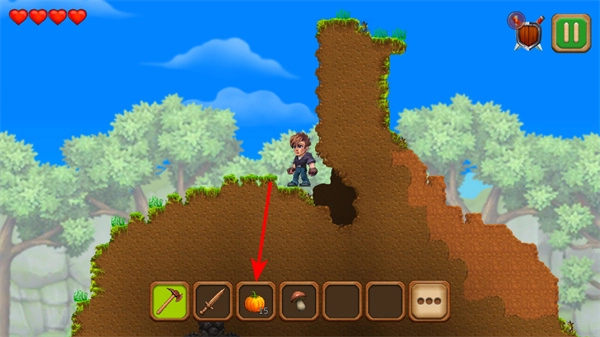 在探索途中,收集到的南瓜、蘑菇之类的物品会被存放在道具栏里,这些物品能够用来制作、交易等,要合理运用收集到的资源。