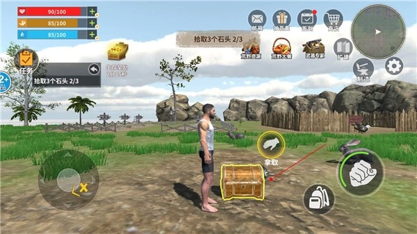进入蛮荒进化生存游戏后,你可以借助左侧的任务来明确自己的目标。