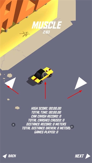 游戏会记录行驶距离、碰撞次数这类数据,还会展示最佳成绩记录,玩家要尽量让行驶距离更长,减少碰撞发生,去挑战更高的记录。