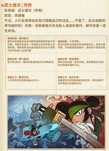 此次共有两位新英雄亮相,一位是神话级火力手「钻地阿萌」,另一位则是传奇级突袭者「武士健次」。