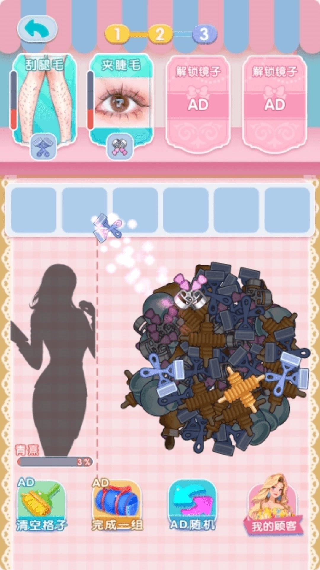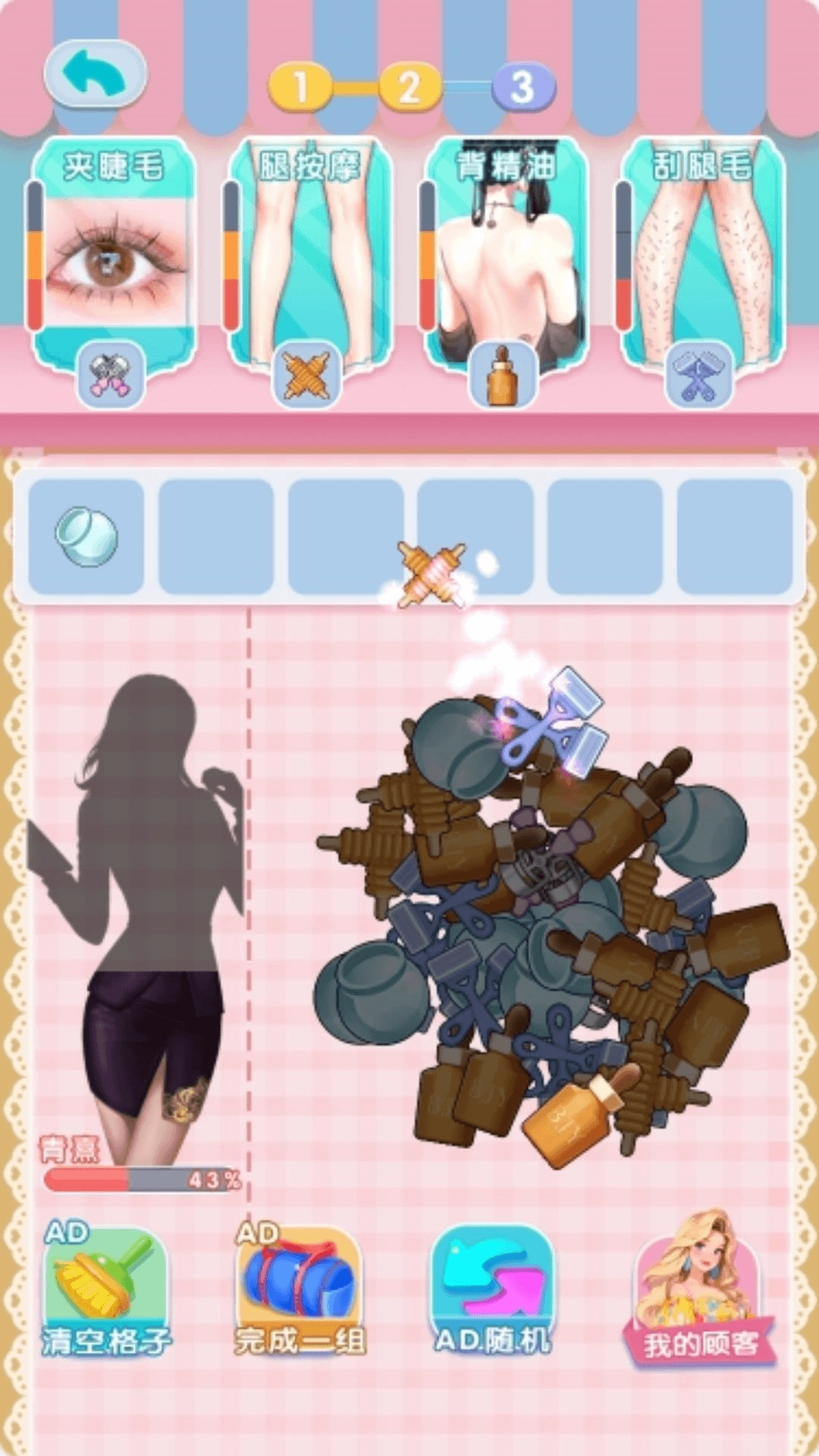 1、这是一种简易的模拟换装玩法,玩家要借助给定的道具为娃娃装扮造型,因此对个人的创造能力有一定考验。