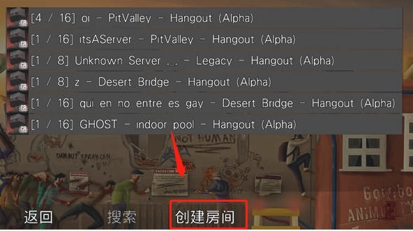 3、进入服务器后,既能够加入其他玩家的房间,也可以自行创建房间。