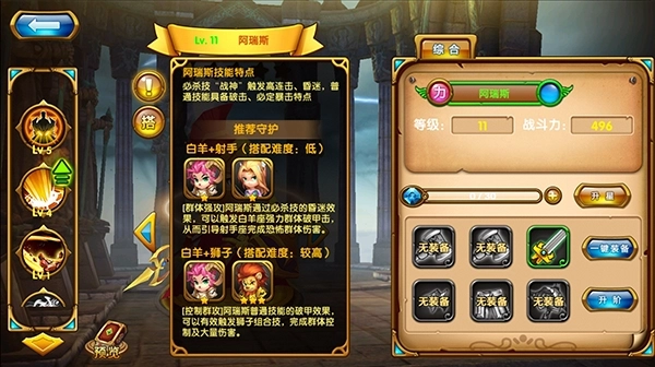 阿瑞斯若想提升自身实力,可选择白羊座与狮子座守护的搭配。其中,白羊座守护需通过连续登录游戏获取,累计登录一天即可免费领取;狮子座守护则需首笔充值满6元,届时会获得首充礼包,礼包内包含三星阶的狮子座守护,还有各类转职道具、经验药水以及金币。