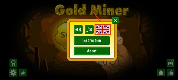 1、打开黄金矿工手机版小游戏,点击界面左下角的设置按钮。