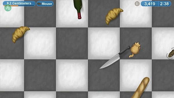 游戏里会遇到危险的事物,要是你体型不够大,碰到比你大的物体就会受伤并变小,有些甚至会把你吃掉。