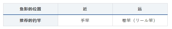 可以根据鱼影的远近调整钓竿类型:距离较近时适合选用手竿,若距离稍远,则推荐使用卷轴竿(リール竿)。