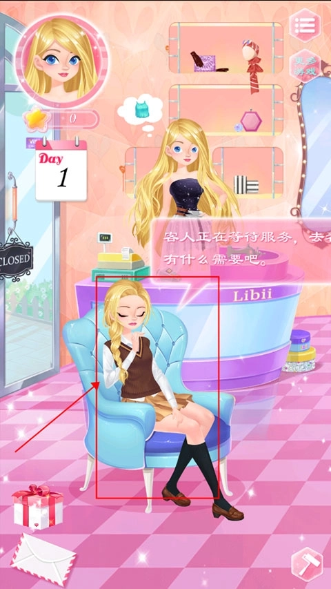 1、启动游戏,进入布莱尔的时装店。瞧~已经有顾客在这儿等候了;