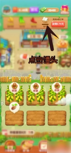 倒计时结束,点击收获馒头。