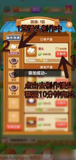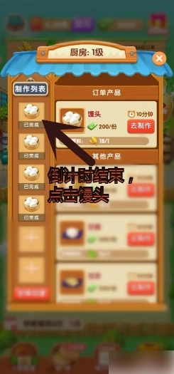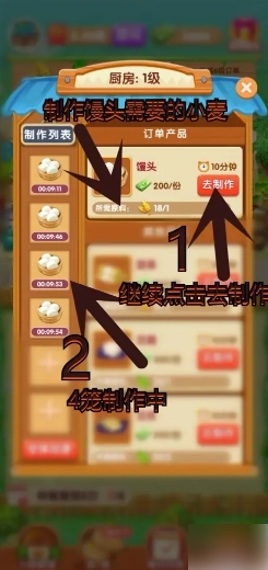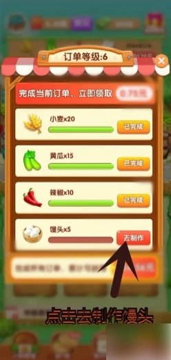 订单产品中制作馒头需要用到小麦,而仓库里正好有之前收获的小麦,现在就点击去制作馒头吧。