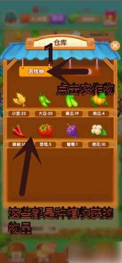 点击页面右侧仓库,里面都是种植收获的物品。