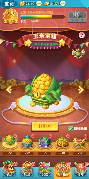 螃蟹宝箱:稳定产出元宝的途径。开启后不仅能得到一定数量的元宝,还必定能获取高品质英雄。