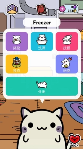 4、点击猫咪,包括奖励、洗澡、抚摸和外出等玩法,