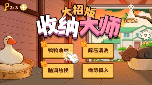 收纳大师大招版安卓版游戏玩法丰富多样,涵盖鸭鸭收纳、解压清洗、脑洞热梗、微恐慎入这四大主要模式,为你带来别具一格的解压体验。