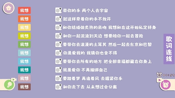 7、歌词对对碰,在规定时间内,为歌词进行连线,考验你曲库储备的时候到啦。