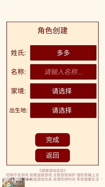开局先开启“新的人生”篇章,在这里你可以自由设定自己的姓氏、名字与家境背景,就连出生地也能随心选择。