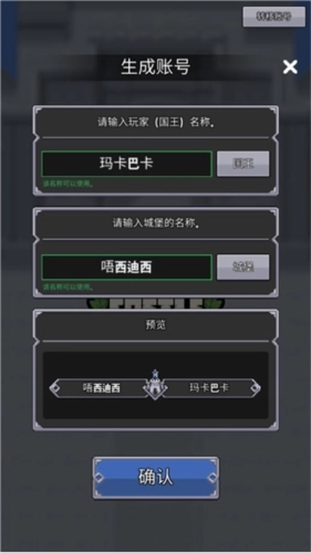 3、然后王和城堡输入名字,点击确定即可开始游戏