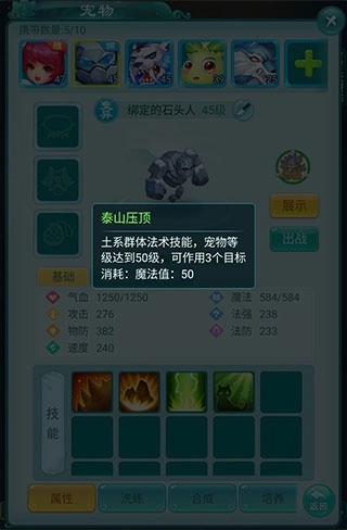 在升级途中,你还能获得一枚石头人的蛋,里面藏着一只变异石头人,用起来也相当顺手。这大概率是你拥有的第一只变异宠物,而且它还是群攻法师型宠物,一次能攻击三个敌人,能显著提高团队的输出效率。