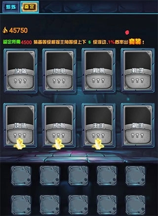 鉴定里面带有金色标志说明有几率出套装