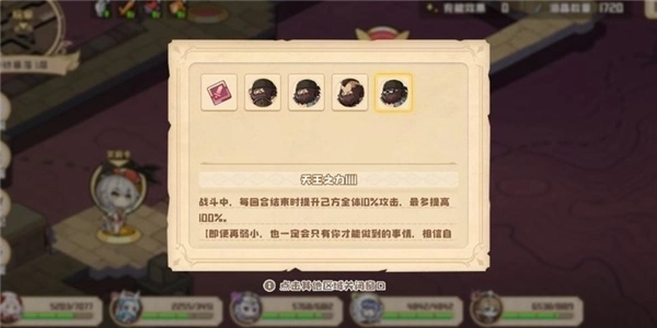 挑战天王时,若全程选择上方选项,可触发第三结局(若全部选下方则是第一结局)。这一关的核心要点在于第二位天王,开战前借助左下角的充能功能把防御提升到最大值,保证队伍无人减员地通过。之后依靠击败天王所得到的增益效果,后续的战斗就算不进行额外强化也能顺利开展,只要在每次战斗前关注血量并及时回复,就能轻松通关。