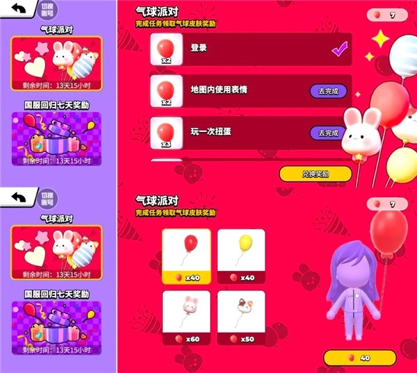 金币与徽章:通过日常的活动任务以及签到就能获取,可用于抽取扭蛋、购买装扮和动作。
