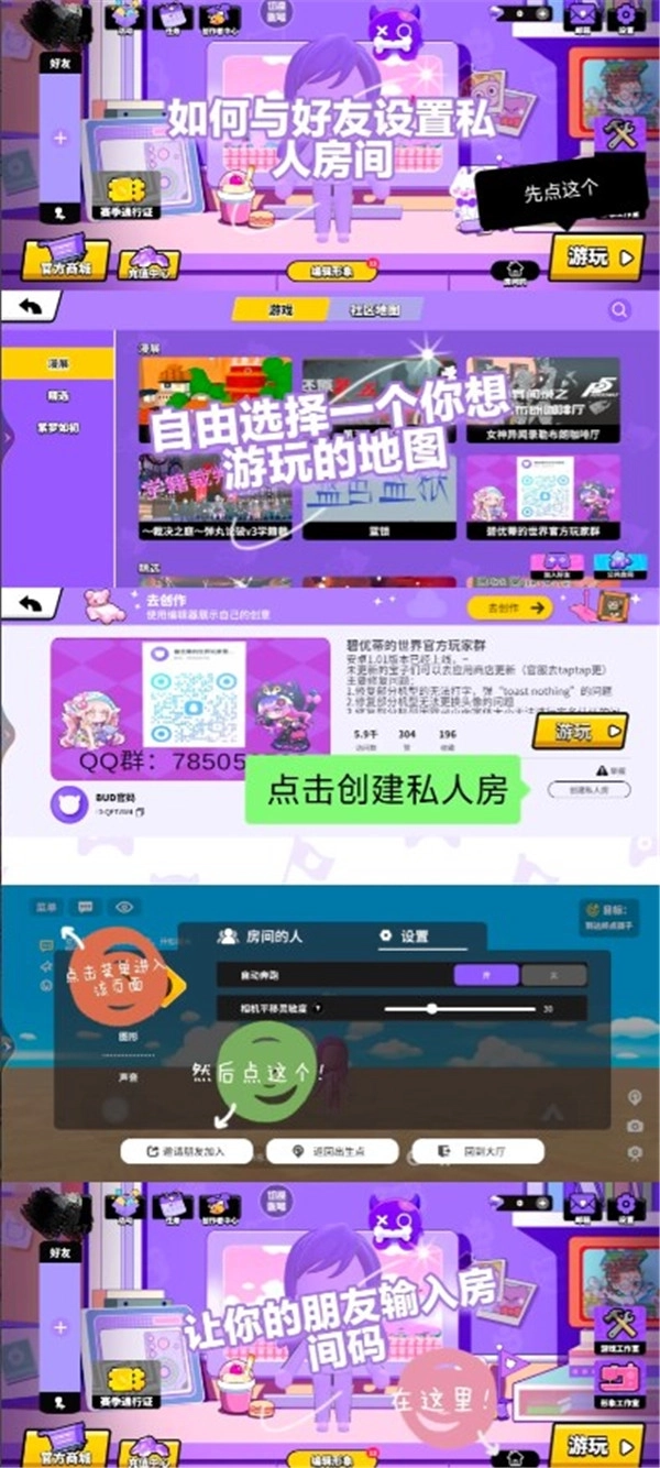 〖添加好友〗查看当前在地图里游玩的好友,然后加入对方的地图房间