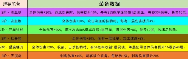 解析:这套装备里,猎魔镰刀是唯一需要优先出的装备,其他每件装备的选择都能带来伤害提升,装备过渡过程十分平滑。
