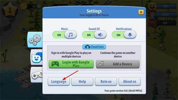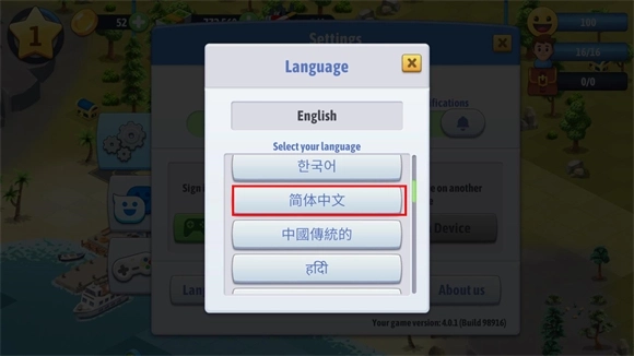 3、滑动屏幕找到简体中文选项,点击该选项即可将游戏语言切换为中文版。