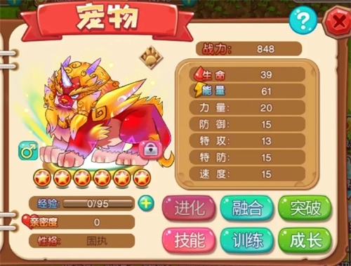 在《宠物王国外传》里,捕捉、孵化、技能升级、强化训练、进化、突破、融合、合体以及繁育等多种系统,能帮你培育出专属于自己的最强神宠。游戏里宠物的性别主要是为了繁育功能而设定的,关于繁育有几个关键概念:蛋组、繁育天赋、世代和遗传能力。属于同一个蛋组的两只不同性别的宠物,借助繁育功能,就能生出继承父母双方种族、属性等特征的下一代宠物。