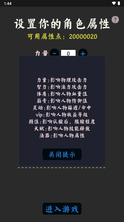 进入爬塔需要分配自己的属性点