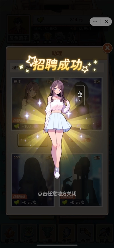 2、招聘员工:玩家可以通过点击屏幕上的招聘按钮来招聘员工,员工可以帮助玩家管理鱼塘,提高鱼的产量。