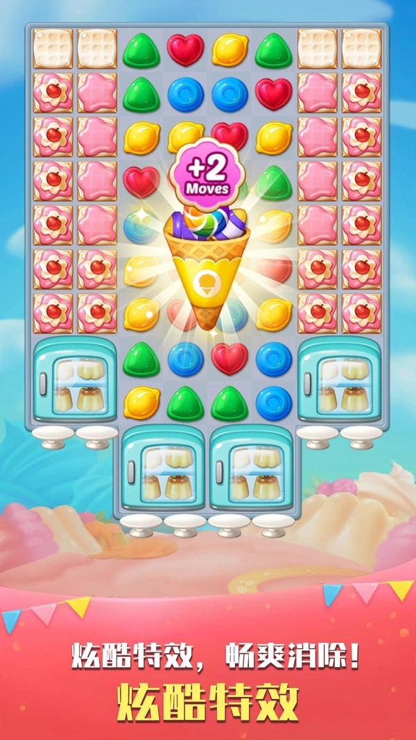 4、果冻角色的设计都十分生动,音效表现也十分出色,每一次消除成功的音效都能让人感到愉悦。