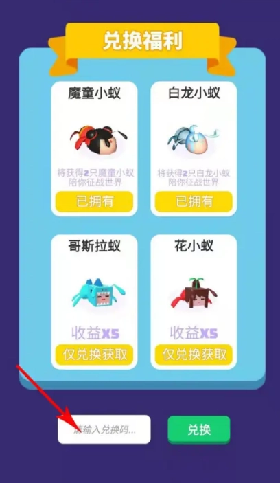 2、在兑换专区里找到想要兑换的蚂蚁,点击该蚂蚁进入兑换详情页面。
