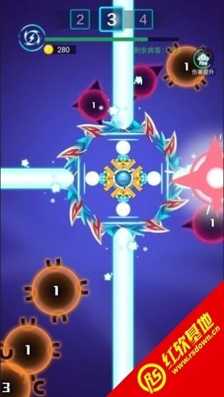 5.飞碟与病毒展开了一场激烈的战斗,成功消灭了所有病毒,迅速从包围圈中突围,最终赢得了胜利。