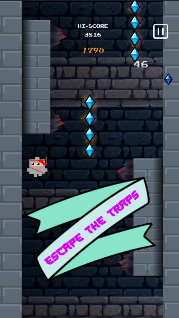 忍者爬墙跳跃是一款竖屏闯关游戏,游戏画面采用经典的像素风格打造。在闯关过程中,玩家会遇到大量陷阱和障碍物,这正是考验反应能力的时刻。收集的钻石数量越多,得分就越高,这些钻石还能用来解锁更多角色。感兴趣的玩家快来体验吧!