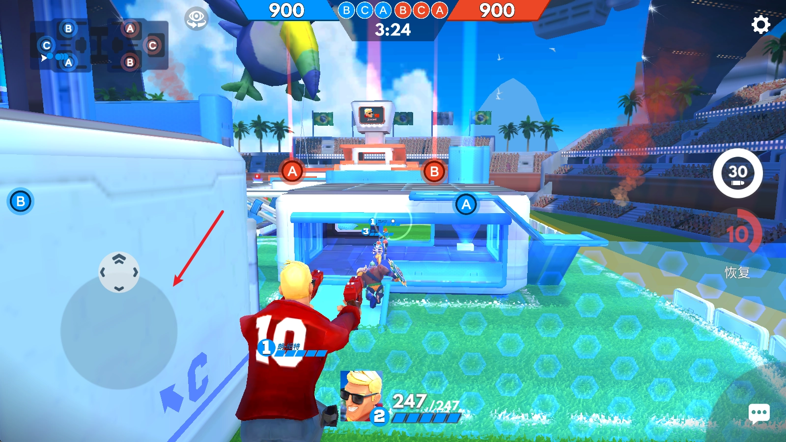 1、进入游戏后,可借助左侧的摇杆操控人物移动。