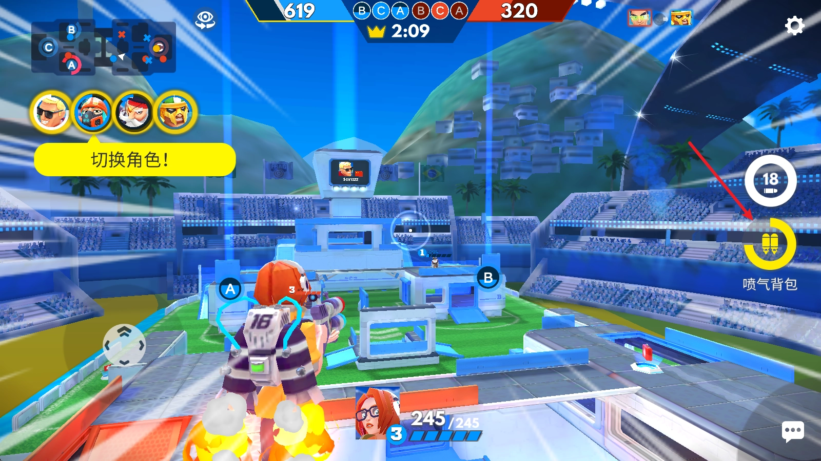 6、每个角色都具备独特的技能,像当前这个角色,就是借助喷气背包实现短暂飞行。