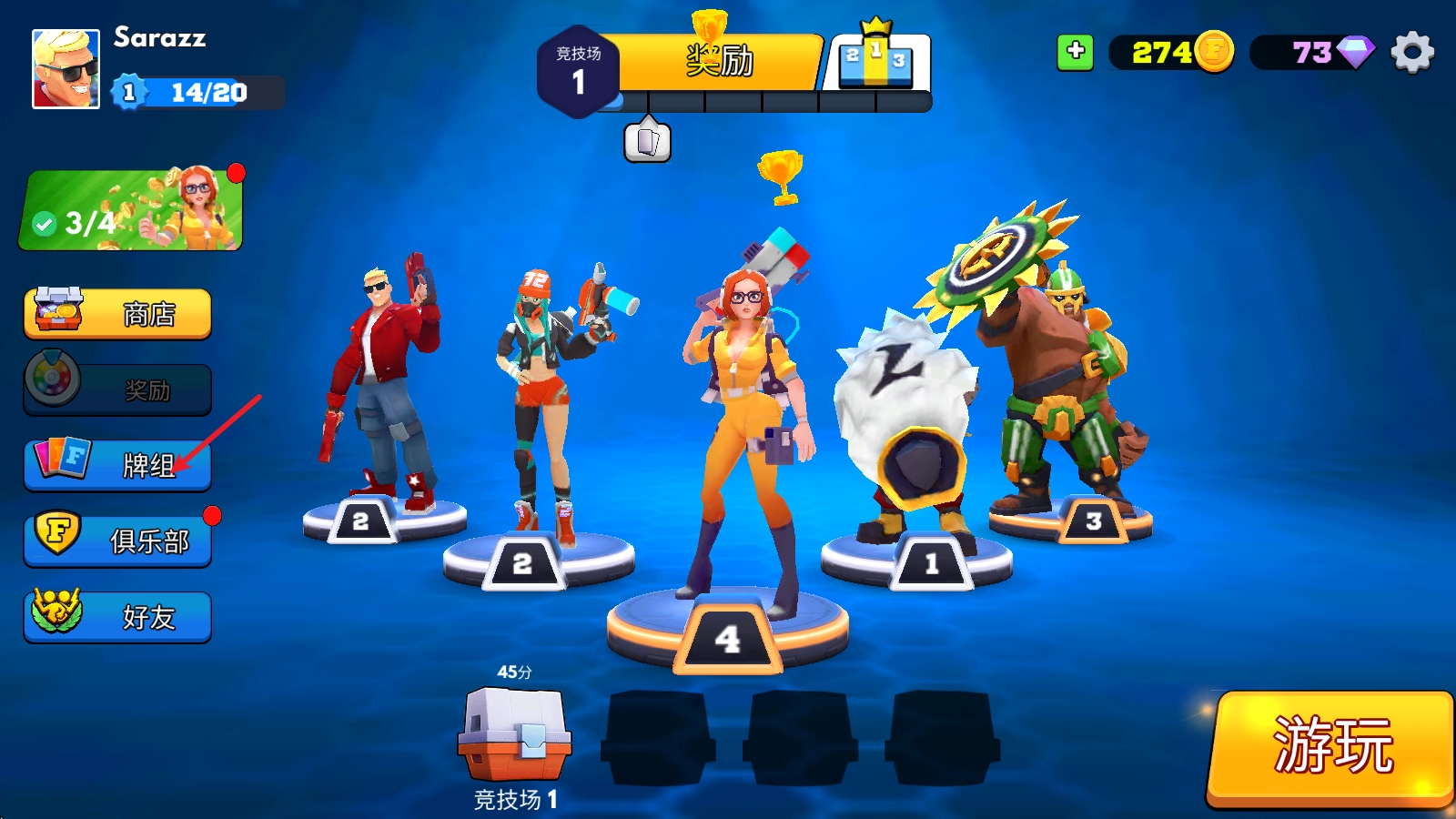 1、角色升级需要用到对应的卡牌,这些卡牌可以通过开启对局获得的宝箱来获取。