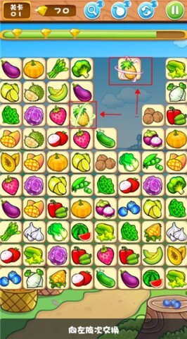 3、通过连接相同的水果或蔬菜,以达成消除的目的。