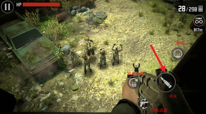 右侧为开火、换弹、切换武器等功能按钮,具体可参照图示。