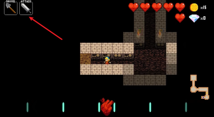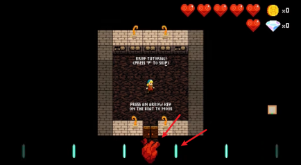 2、踏入关卡后,在画面下方能瞧见一颗跳动的心脏以及各类节拍,不管是移动还是展开战斗,都得依照节奏来进行。